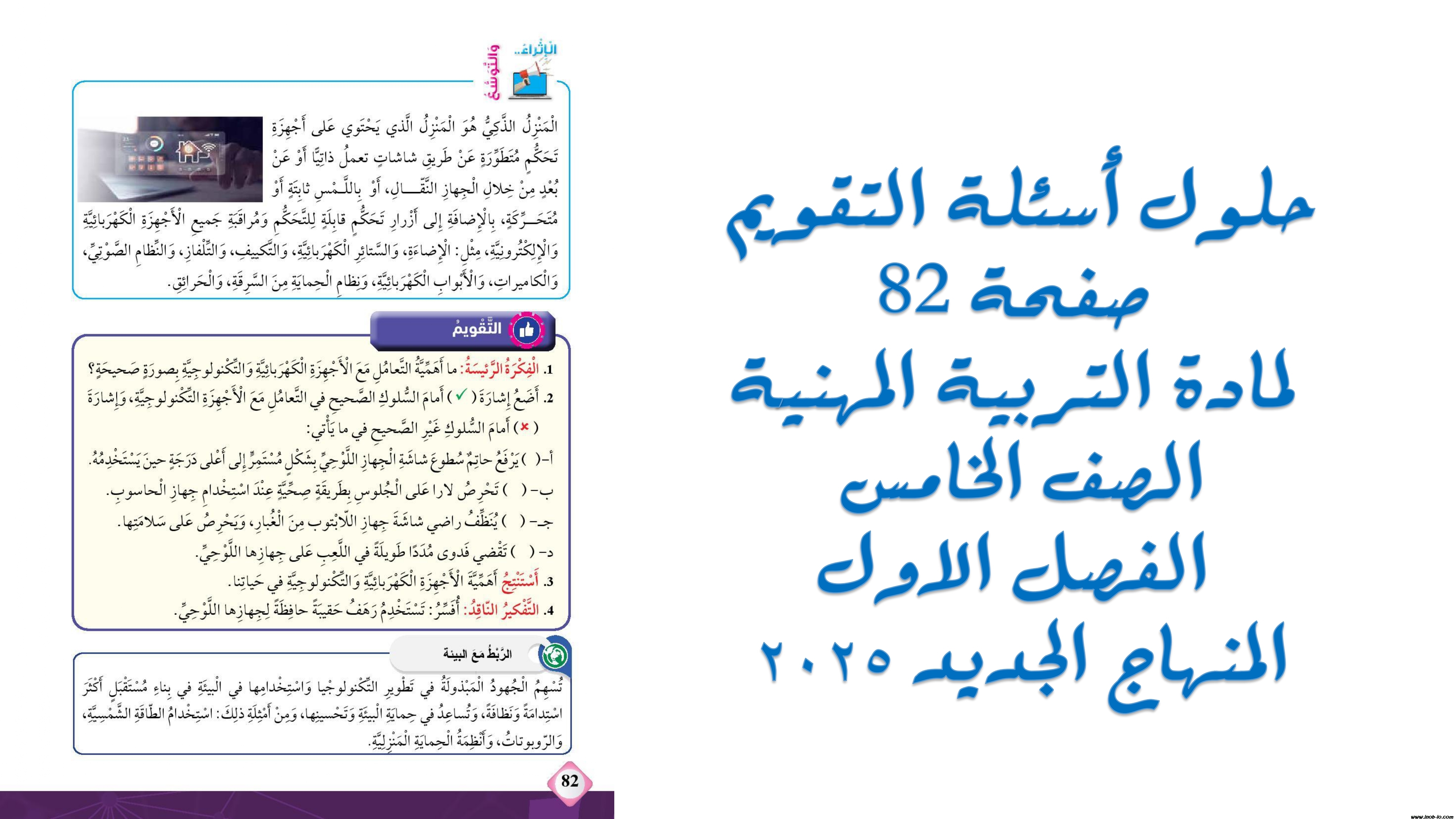حلول أسئلة التقويم صفحة 82 لمادة التربية المهنية الصف الخامس الفصل الاول المنهاج الجديد 2025