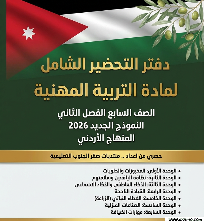 دفتر التحضير الشامل لمادة التربية المهنية الصف السابع الفصل الثاني النموذج الجديد 2026