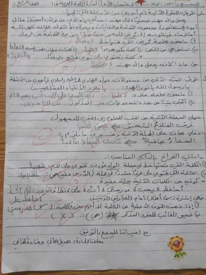 ننقل لكم :نماذج لامتحان اللغة العربية للصف الرابع الفصل الأول