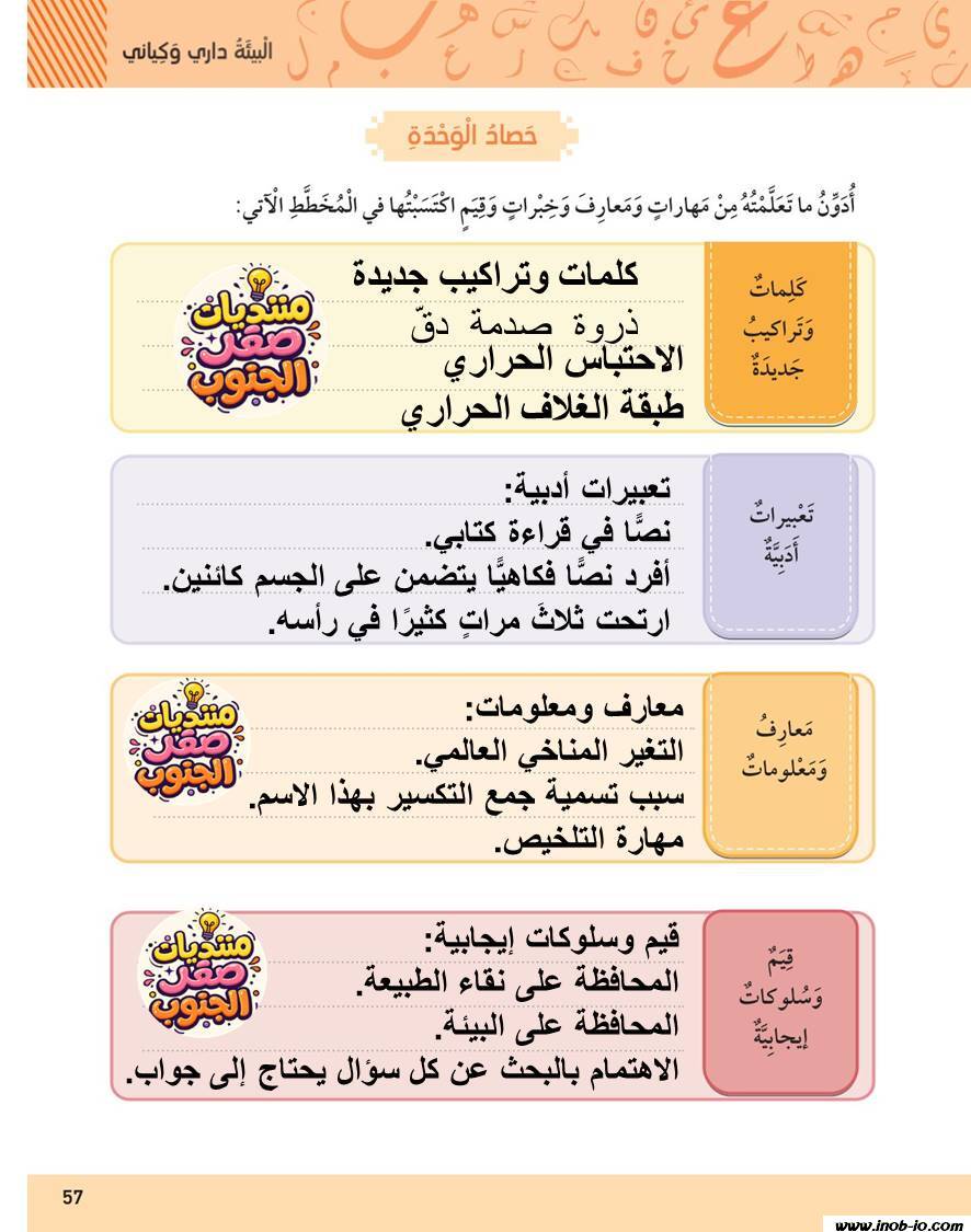 حل حصاد الوحدة السابعة البيئة داري وكياني لمادة العربية لغتي الصف الخامس الفصل الثاني