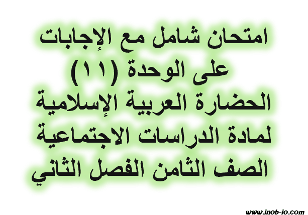 PDF امتحان شامل مع الاجابات على الوحدة (11) الحضارة العربية الإسلامية لمادة الدراسات الاجتماعية الصف الثامن الفصل الثاني