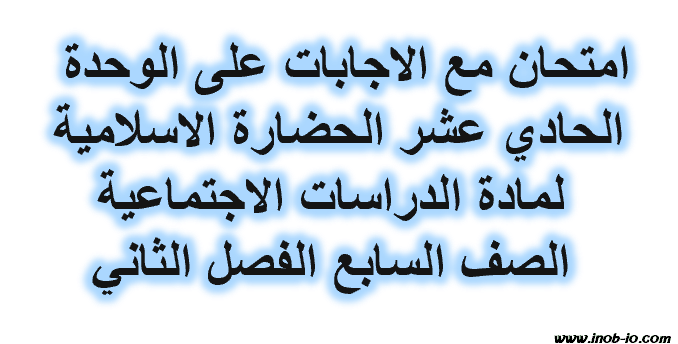 PDF امتحان مع الاجابات على الوحدة (11) الحضارة الإسلامية لمادة الدراسات الاجتماعية الصف السابع الفصل الثاني