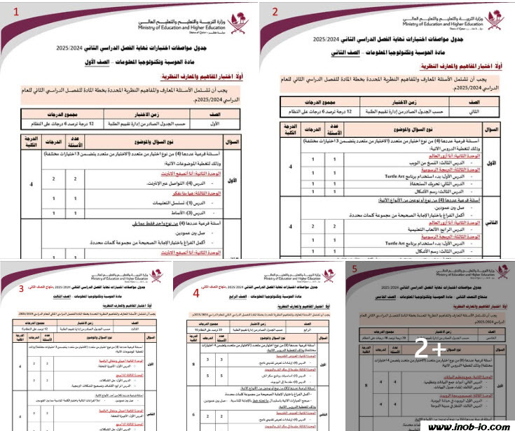 جدول مواصفات اختبار نهاية الفصل الثاني لمادة الحوسبة وتكنلوجيا المعلومات المستوى الرابع 2024-2025