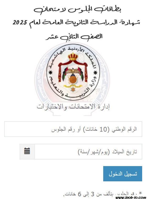 رابط :. بطاقات الجلوس لامتحان شهادة الدراسة الثانوية العامة لعام 2025 الصف الثاني عشر