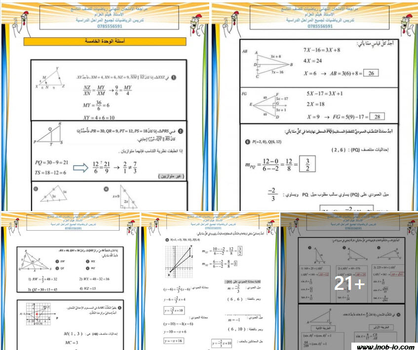 ملف المراجعة النهائية للاختبار النهائي لمادة الرياضيات collins الصف العاشر الفصل الثاني
