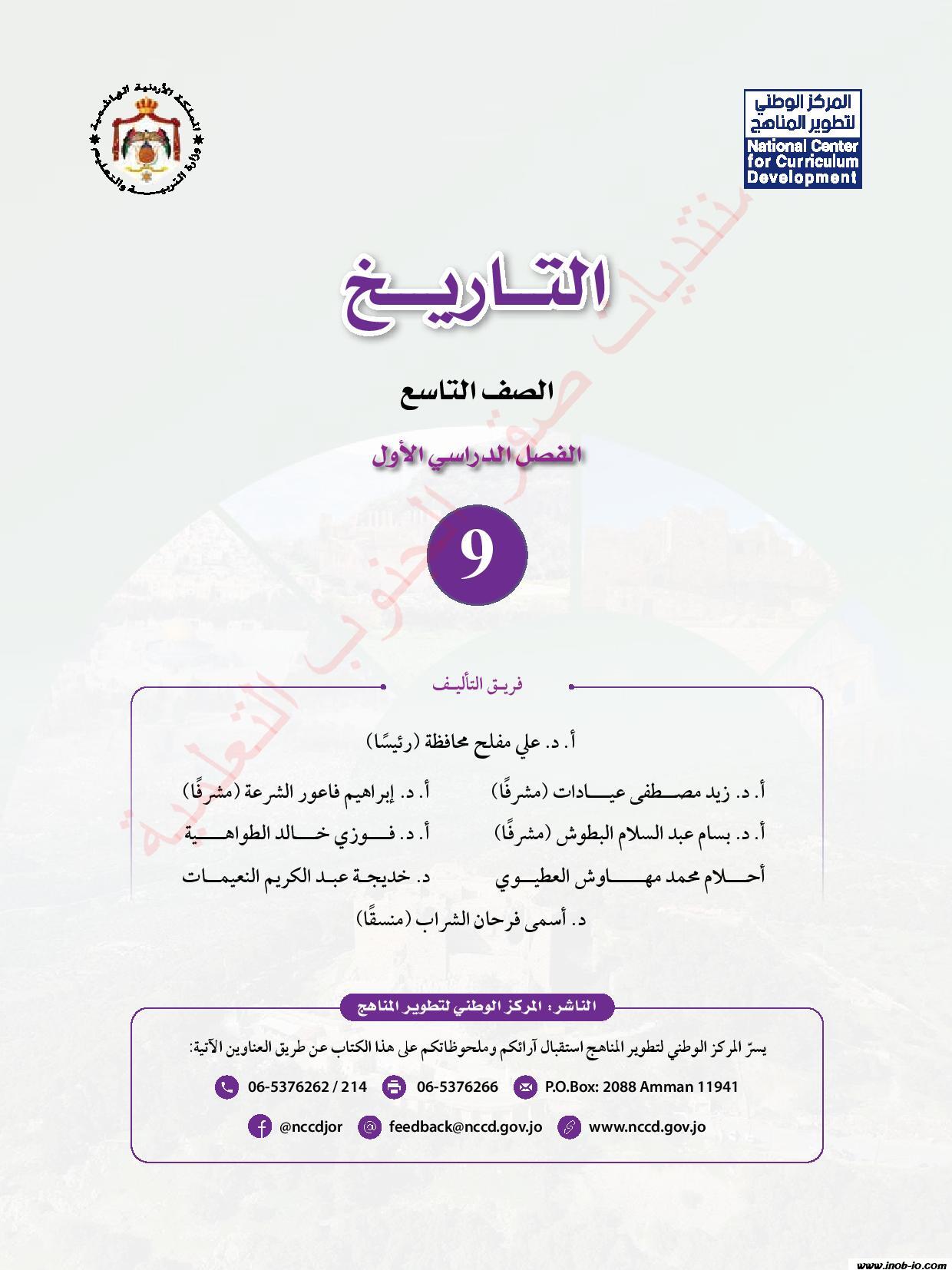 كتاب الطالب لمادة الدراسات الاجتماعية - التاريخ - الصف التاسع الفصل الاول المنهاج الجديد