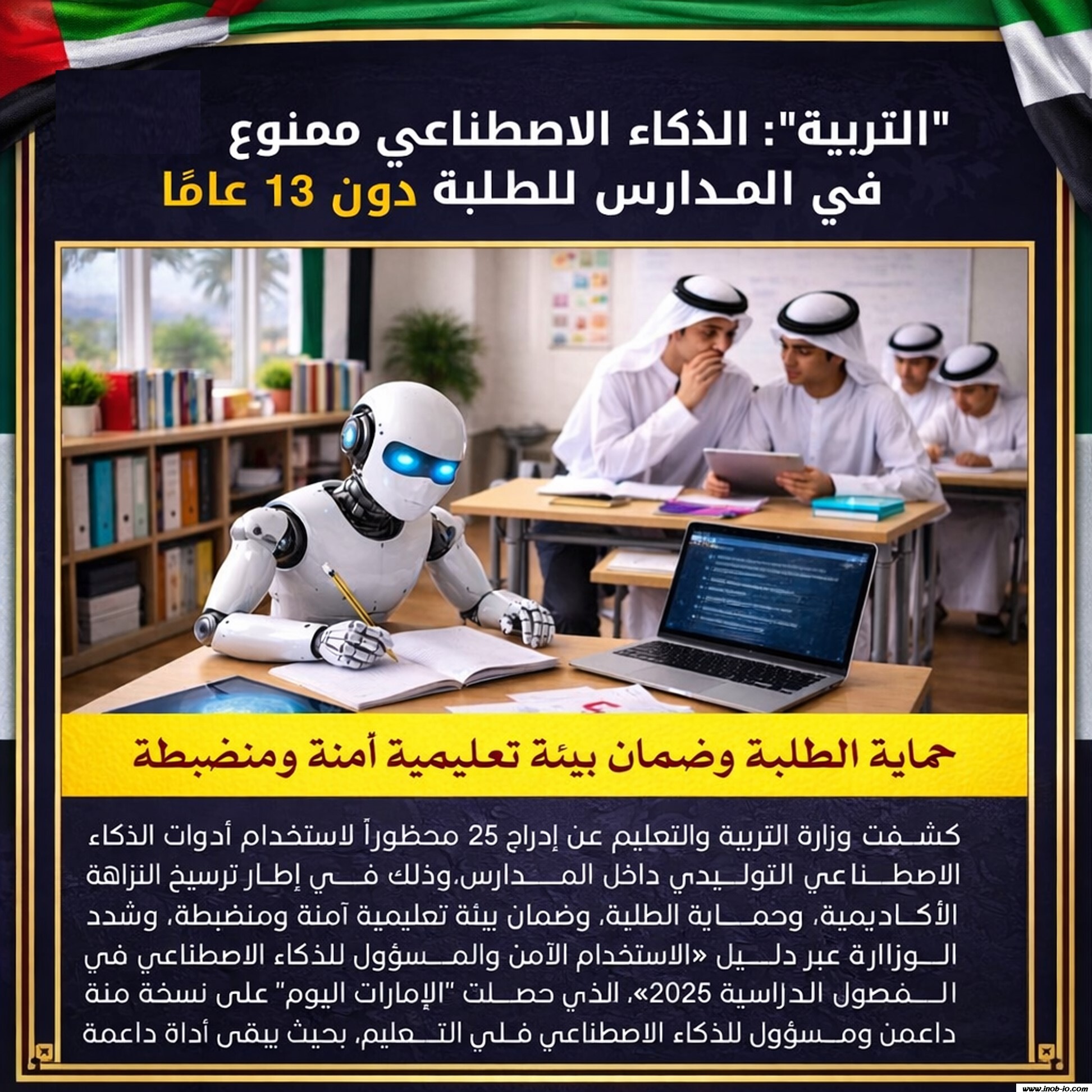 التربية تحظر "الذكاء الاصطناعي التوليدي" على الطلبة دون 13 عاماً