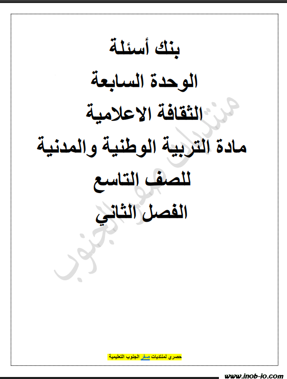 PDF ‏‏‏‏بنك اسئلة 50 سؤال وجواب الوحدة (7) الثقافة الإعلامية لمادة التربية الوطنية الصف التاسع الفصل الثاني