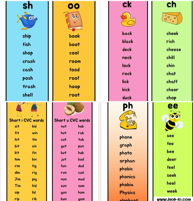 - بطاقات الفونكس لتعليم أصوات الحروف والكلمات الإنجليزية للأطفال