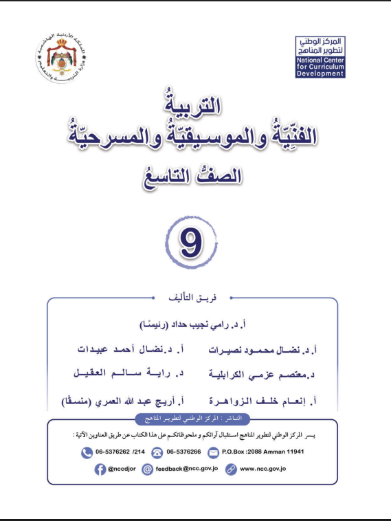 كتاب الطالب لمادة التربية الفنية والموسيقية والمسرحية الصف التاسع الفصل الثاني
