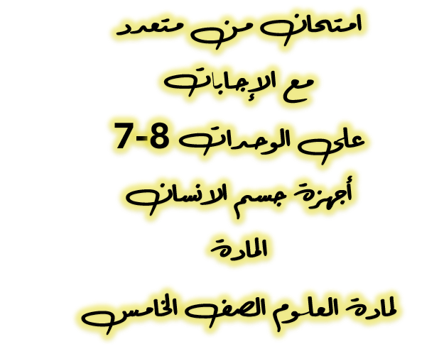 امتحان من متعدد مع الاجابات الوحدة 7+8 أجهزة جسم الإنسان والمادة لمادة العلوم الصف الخامس الفصل الثاني