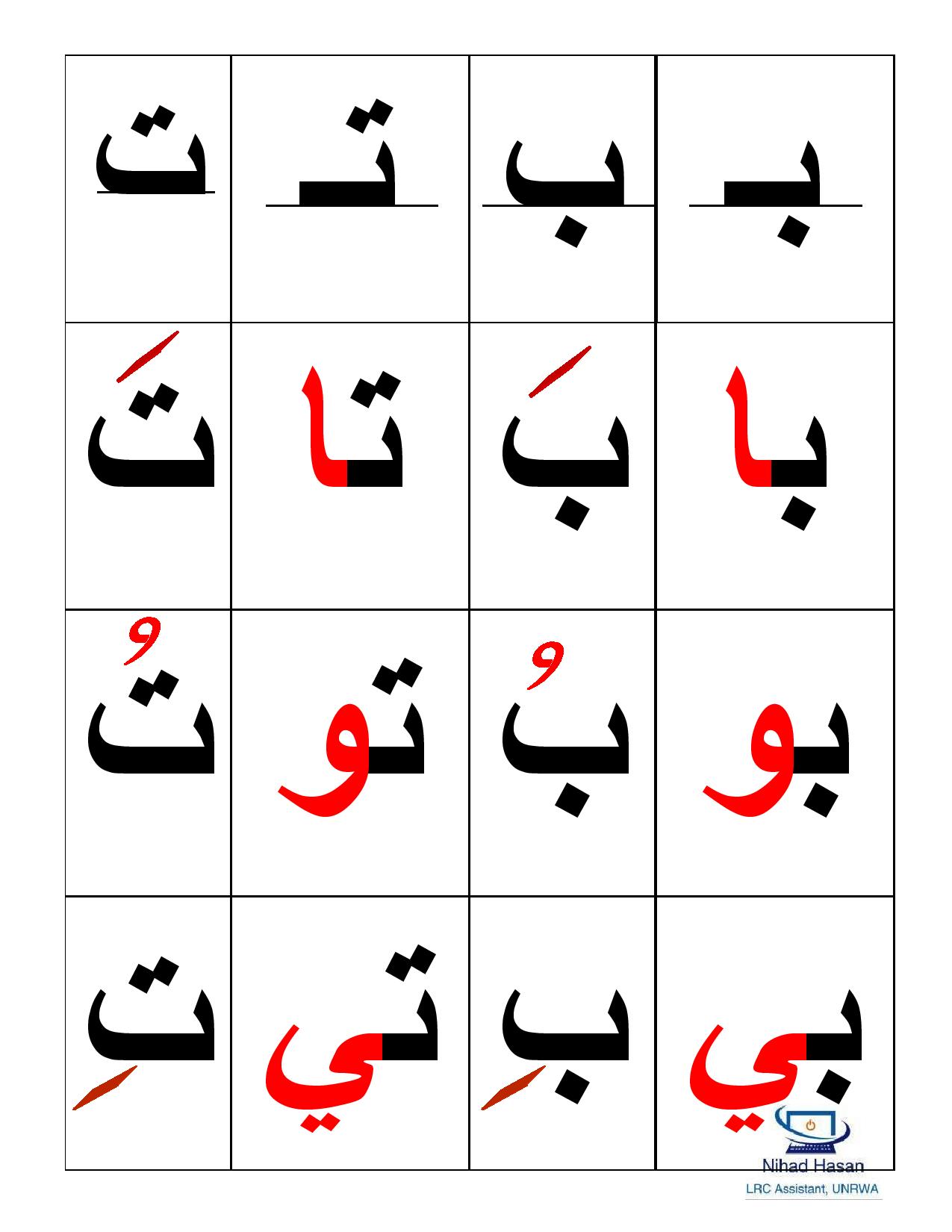 منفصلة لكل حرف على حدا حسب تسلسل الدروس