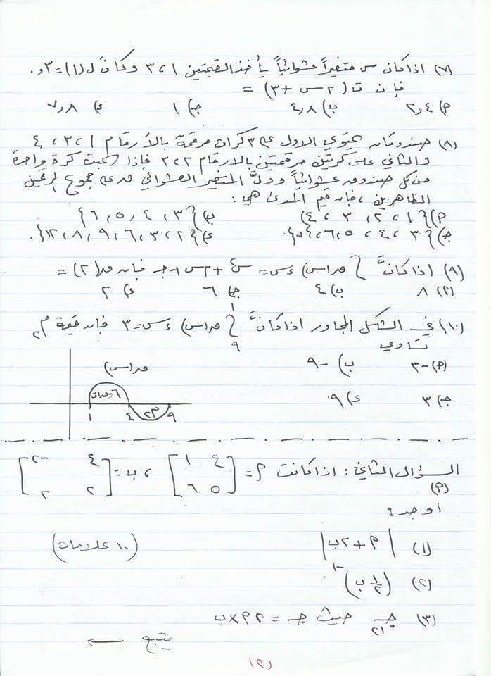اسئلة مقترحة لمادة الرياضيات المستوى الرابع الفرع العلمي