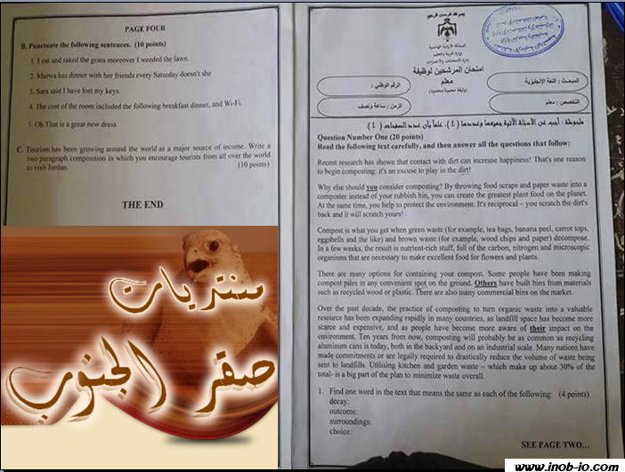 نماذج من الامتحان التنافسي لوظيفة معلم اللغة الانجليزية