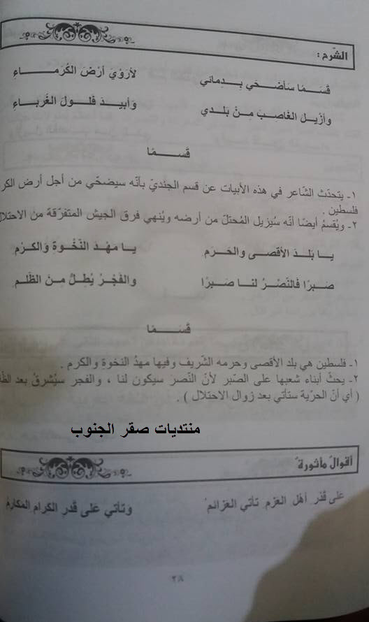 بالصور شرح قصيدة قسم الجندي لمادة اللغة العربية للصف الرابع الفصل الثاني