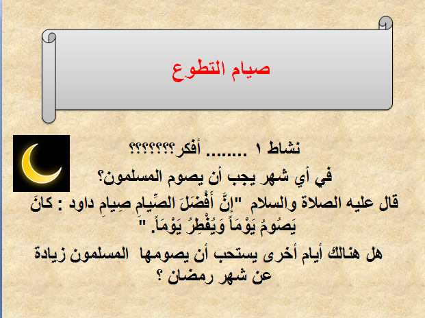 عرض محوسب:درس صيام التطوع - تربية اسلامية - صف سادس - فصل ثاني- 2019