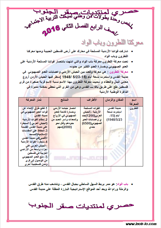 ملخص وحدة بطولات من وطني مبحث التربية الاجتماعية للصف الرابع الفصل الثاني