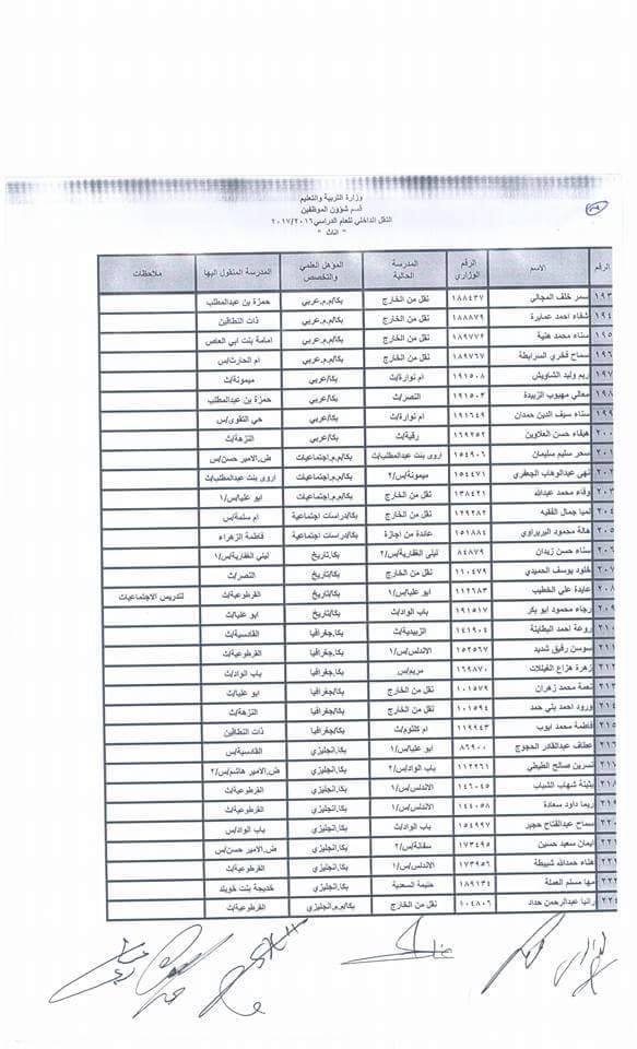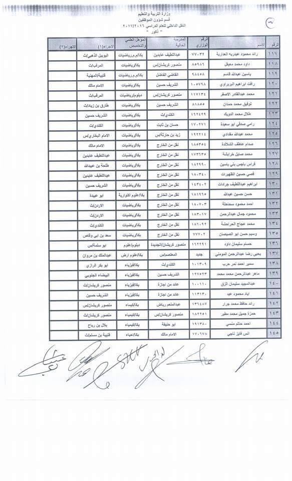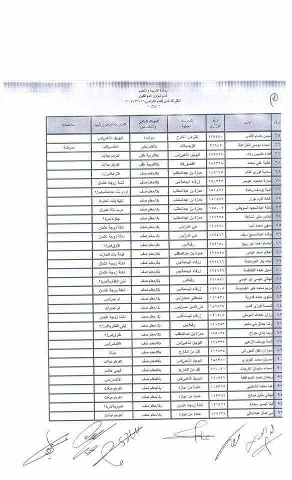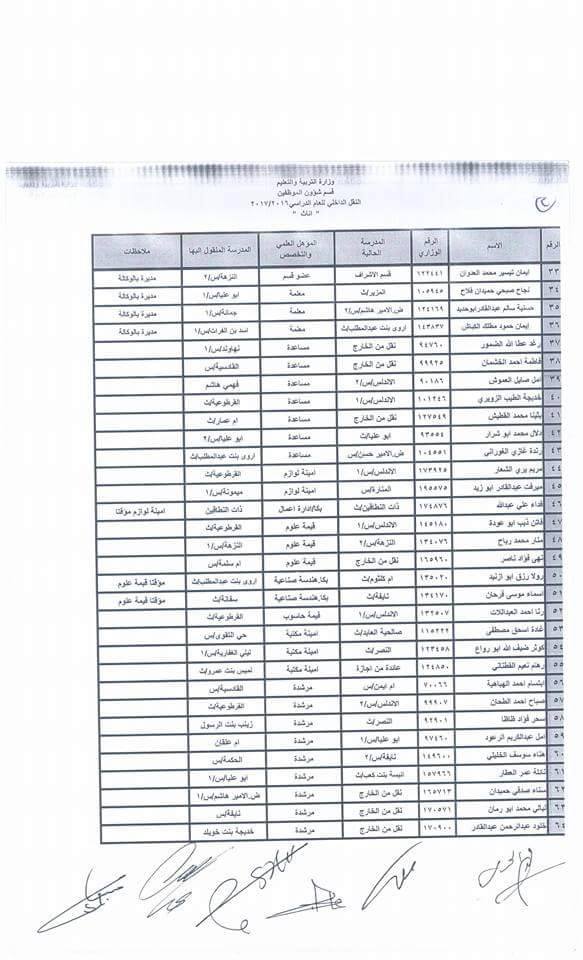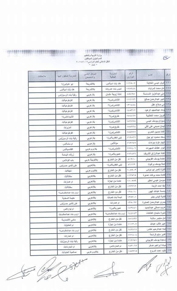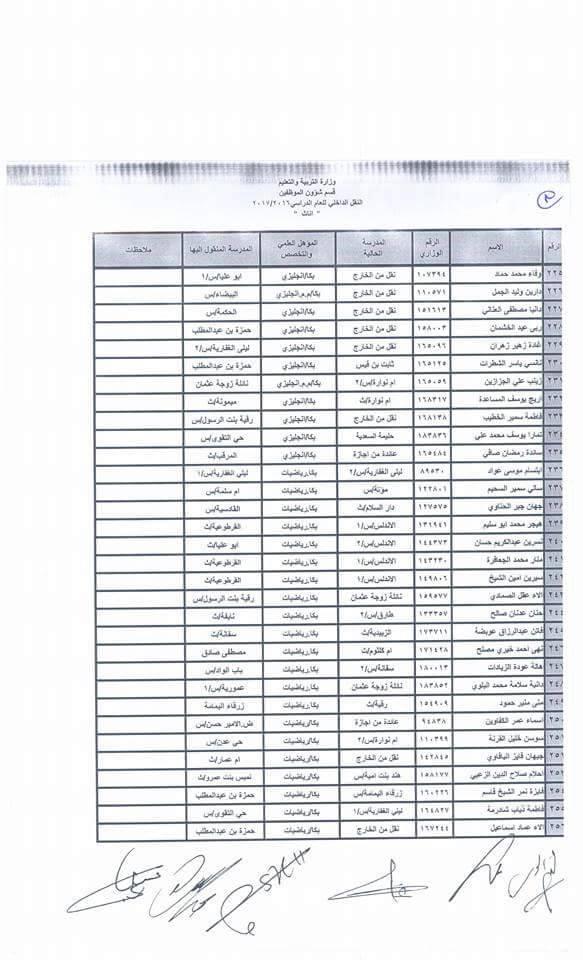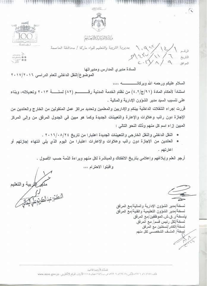 التنقلات الداخلية وتوزيع التعيينات الجديدة لواء ماركا للعام 2016-2017