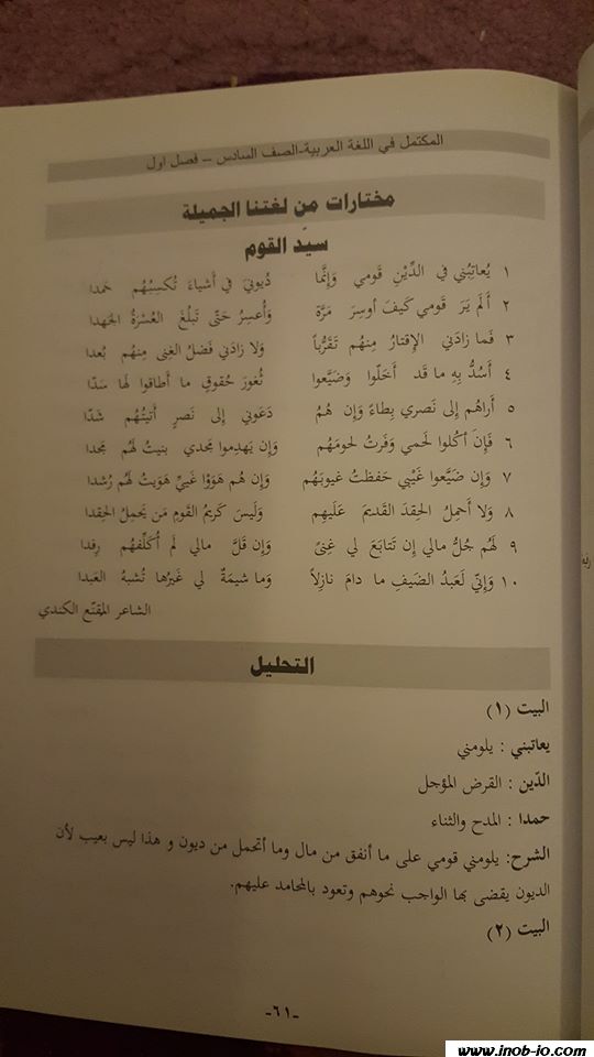 شرح قصيدة سيد القوم للمقنع الكندي الصف السادس الفصل الأول