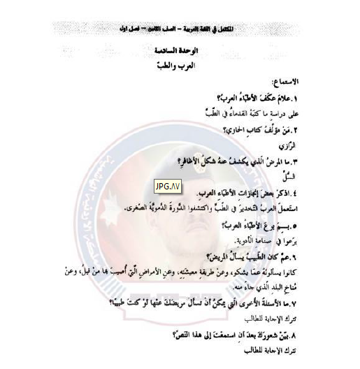 شرح وأفكار ومعاني مفردات وتدريبات وقواعد الطب والعرب الوحدة السادسة الصف الثامن الفصل الاول 2018