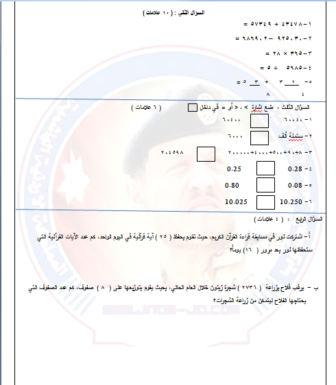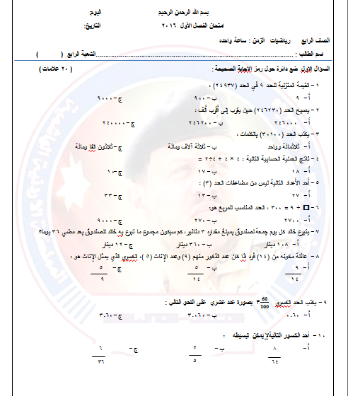 صور جميع الاختبارات النهائية لجميع المناهج الصف الرابع الفصل الاول جديد 2016-2017