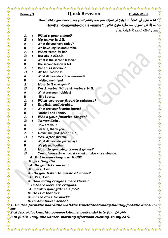 مہجہرد إنہسہآن ادارة الموقع إنضم 27 أغسطس 2009 المشاركات 40,607 مستوى التفاعل 1,619 النقاط 113 العمر 43 الإقامة الطفيلة الهاشمية 27 ديسمبر 2016 #1 [FONT="]English world revision primary three 2016-2017[/FONT] [FONT="] [/FONT] المرفقات English world revision primary three.zip 245.3 KB · المشاهدات: 95