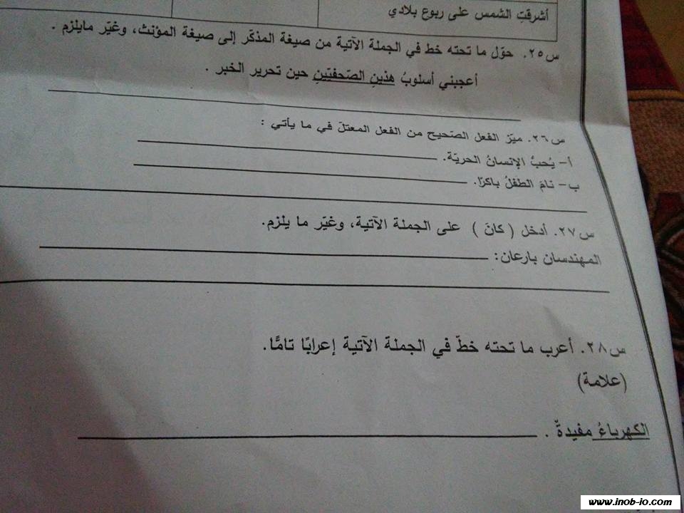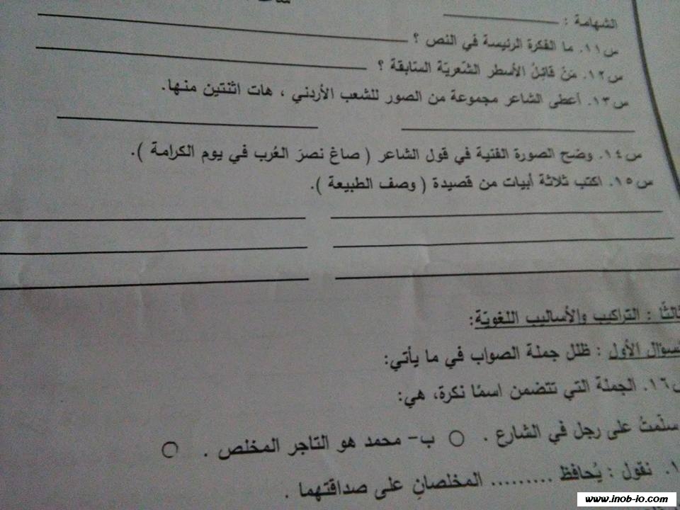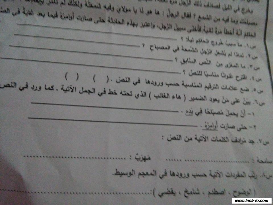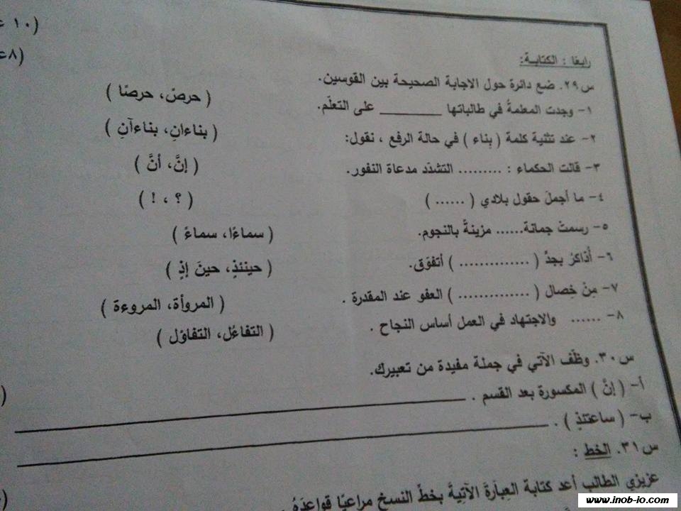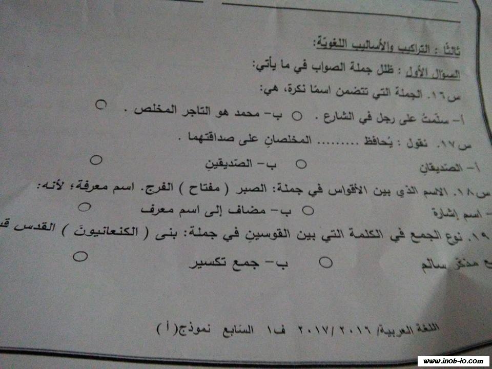 بالصور :. نموذج :امتحان (الوكالة ) الفترة الصباحية لمادة اللغة العربية للصف السابع منهاج جديد الفصل