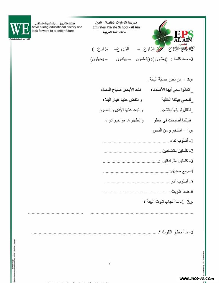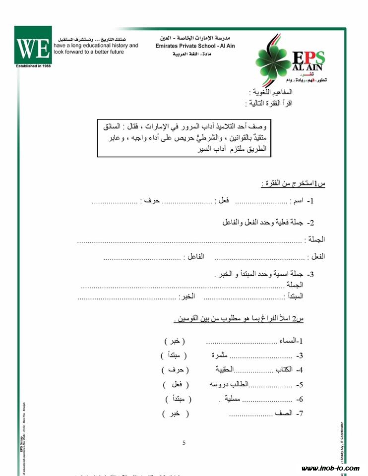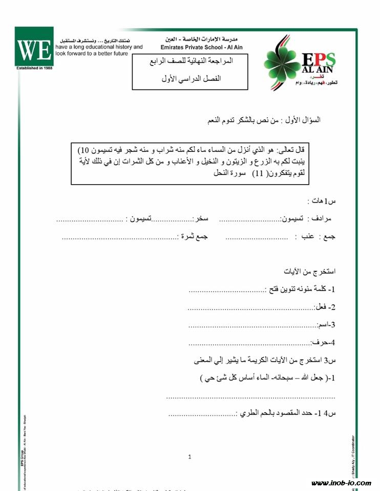 المراجعة النهائية للصف الرابع في اللغة العربية الأسئلة + الأجوبة النموذجية المنهاج الإماراتي