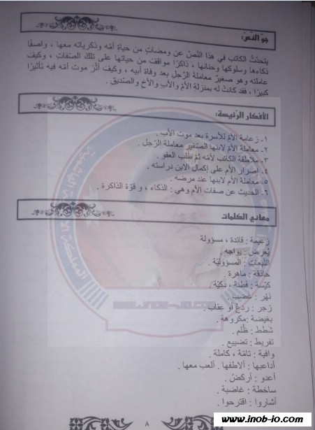 بالصور :. شرح وأفكار ومعاني مفرادت درس أمي لمادة اللغة العربية للصف الثامن الفصل الثاني