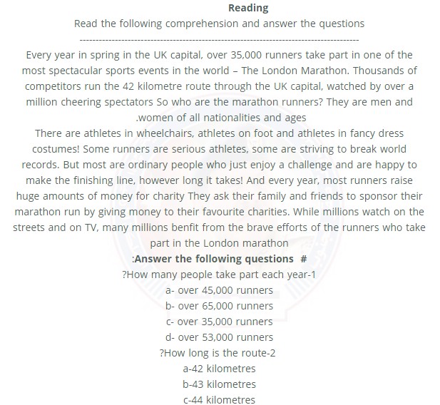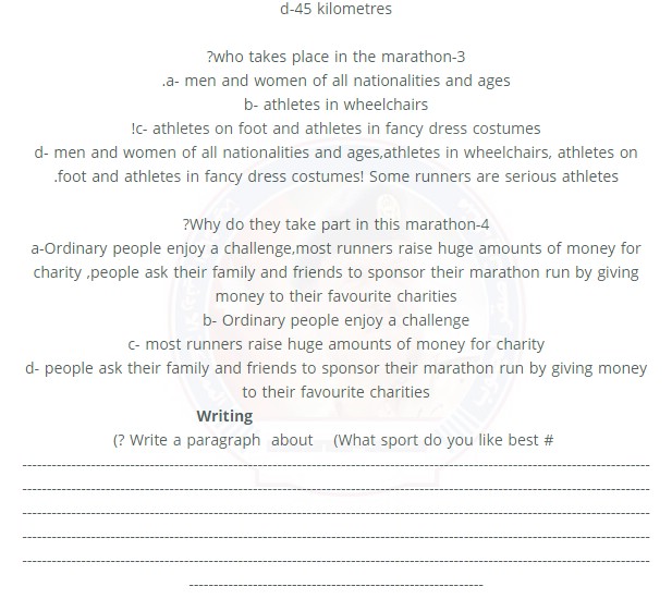 نموذج امتحان في اللغة الانجليزية للصف السادس الفصل الثاني