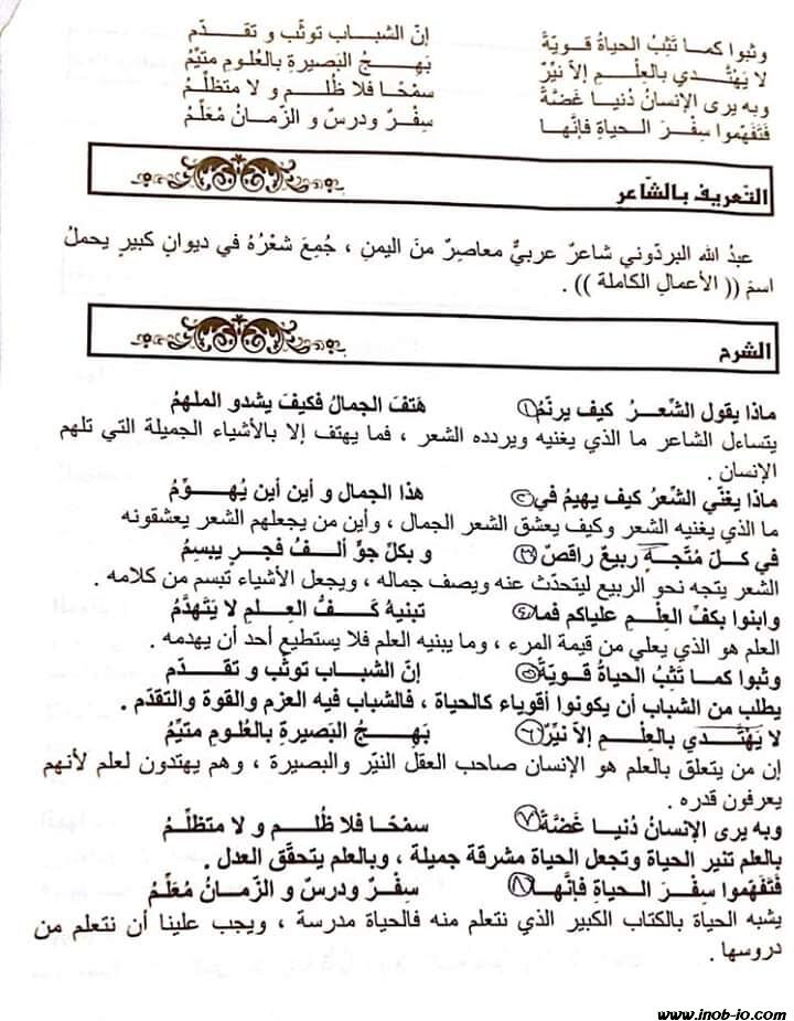 صور شرح قصيدة في الحياة دروس مشرقة اللغة العربية الصف السادس الفصل الثاني