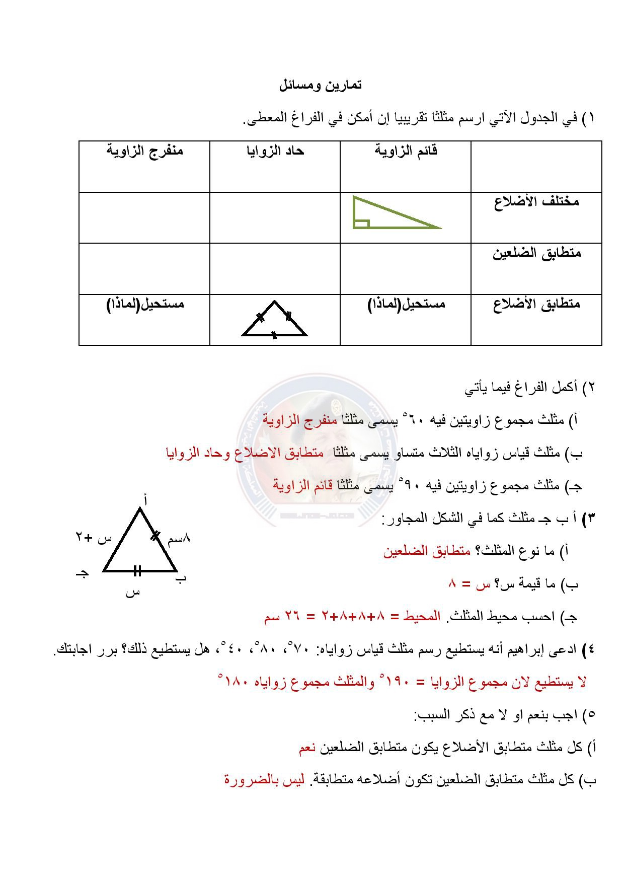 بالصور جميع اجايات وحدة الهندسة لمادة الرياضيات الصف السابع الفصل الثاني المنهاج الجديد 2017
