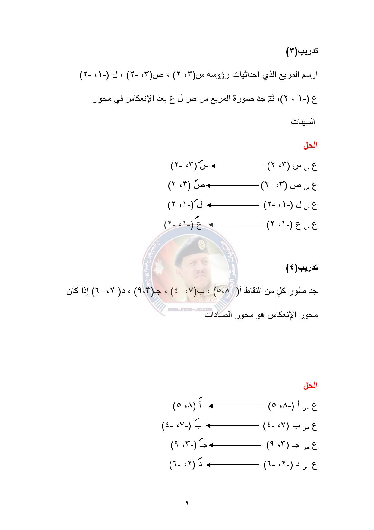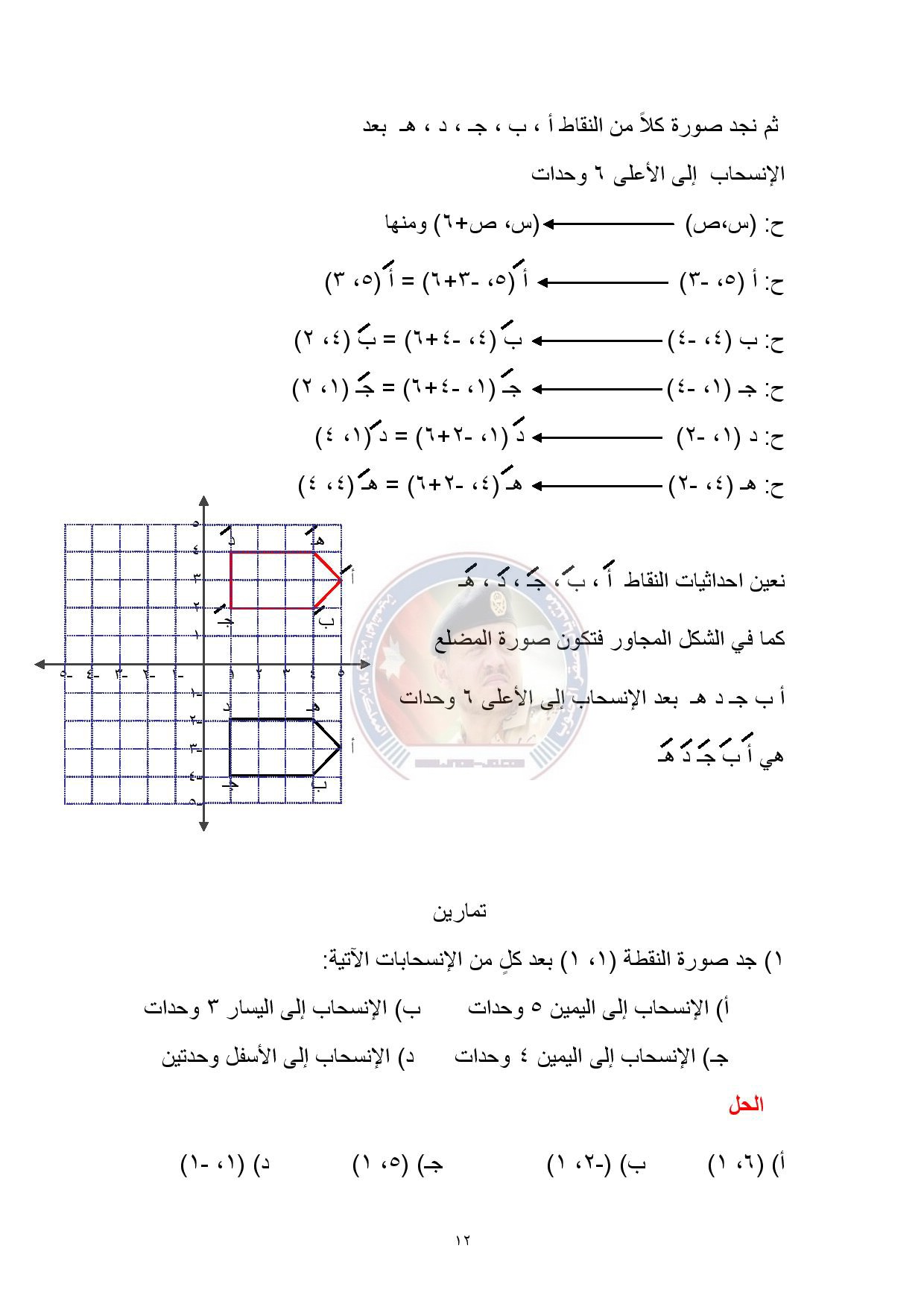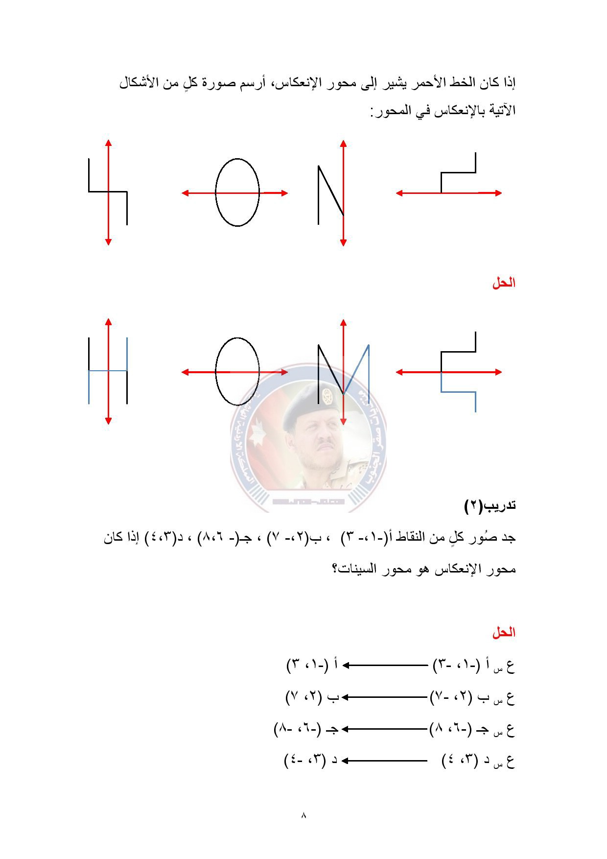 بالصور جميع اجايات وحدة التحويلات الهندسية لمادة الرياضيات الصف السابع الفصل الثاني المنهاج الجديد 2017
