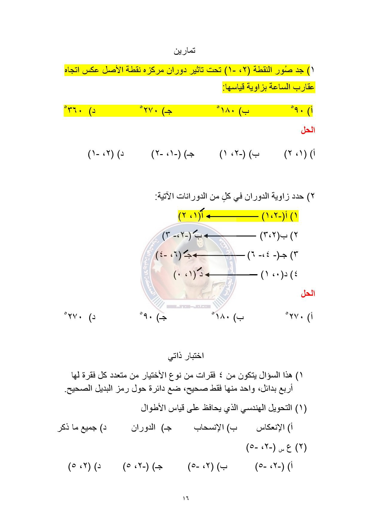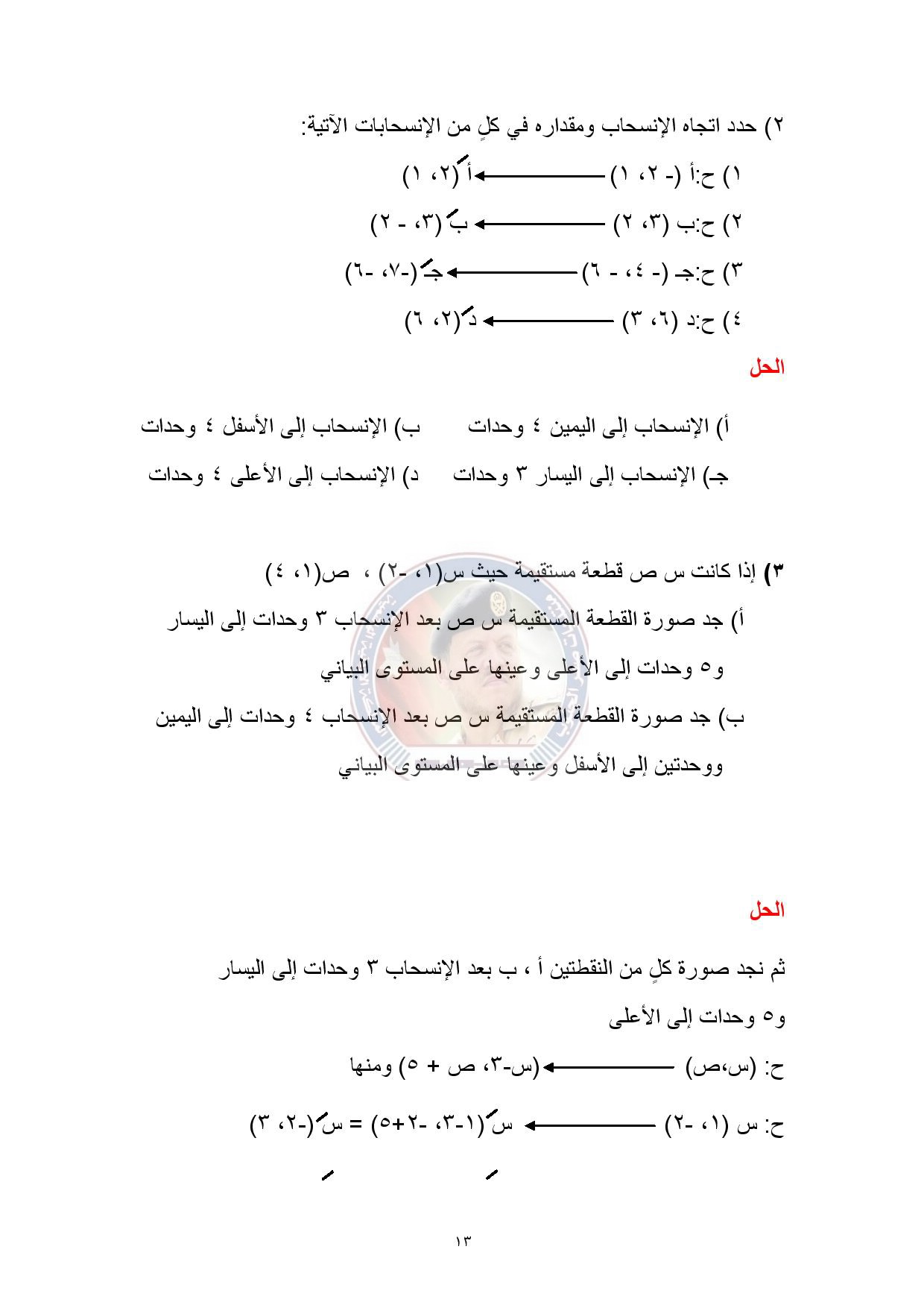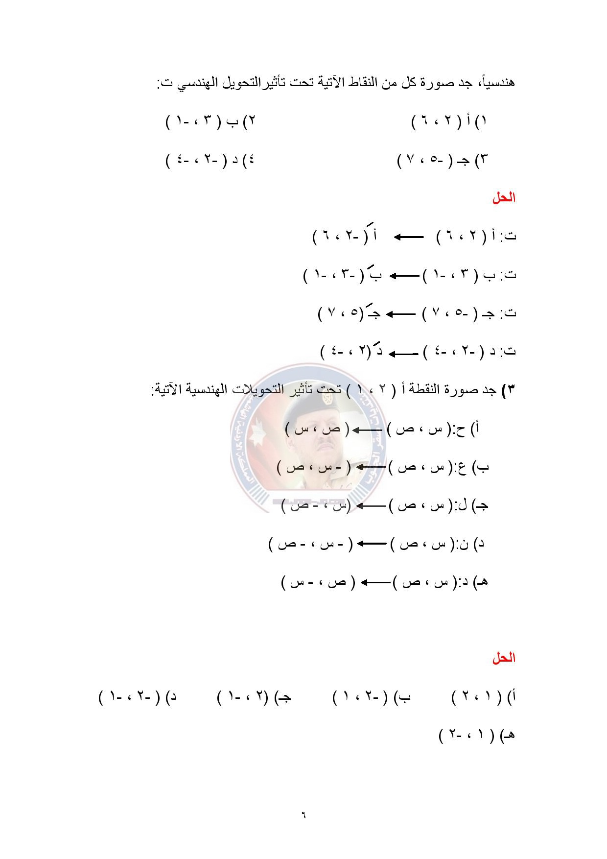 بالصور جميع اجايات وحدة التحويلات الهندسية لمادة الرياضيات الصف السابع الفصل الثاني المنهاج الجديد 2017