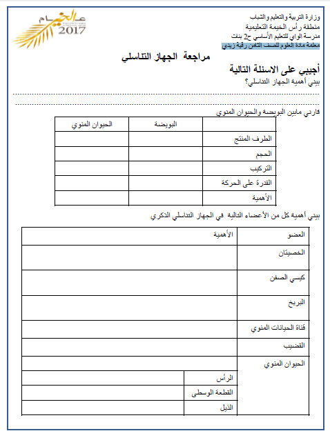 مراجعة الجهاز التناسلي لمادة العلوم للصف الثامن الفصل الثاني لتحميل الملف اضغط هنا