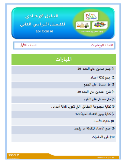 الدليل الإرشادي للصف الاول لمادة الرياضيات الفصل الثاني