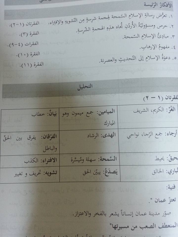 بالصور أفكار ومعاني وصور فنية لـدرس رسالة عمَّان لمادة اللغة العربية للصف الثامن الفصل الثاني