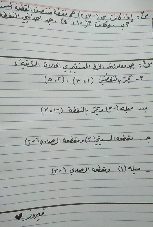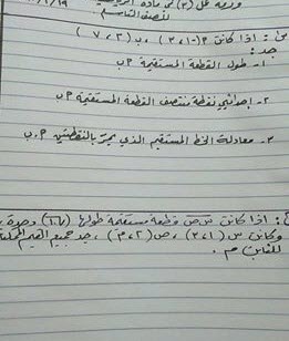 بالصور : ورقة عمل معادلة الخط المستقيم لمادة الرياضيات للصف التاسع الفصل الثاني 2018 او من المرفقات