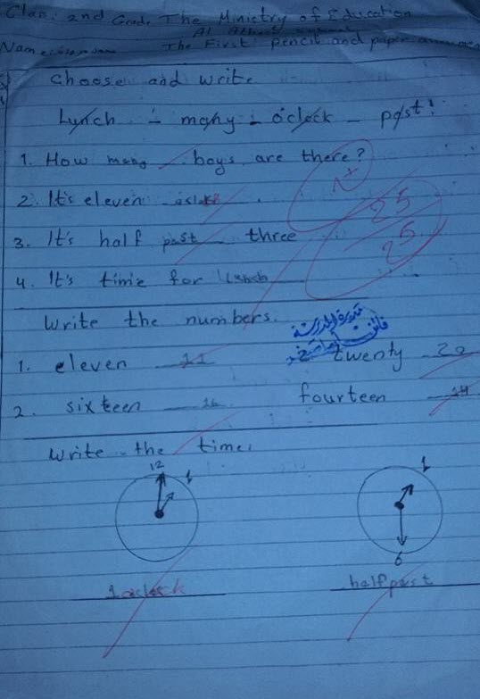 بالصور: نموذج جديد لاختبار الشهر الأول لمادة اللغة الإنجليزية للصف الثاني الفصل الثاني