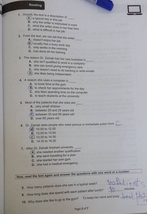 امتحان مادة اللغة الانجليزية للصف التاسع لنهاية الفصل الثاني مع الحل