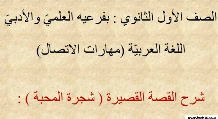 شرح وأفكار ومعاني وكل ما يتعلق بدرس شجرة المحبة لمادة اللغة العربية للصف الأول ثانوي الفصل الثاني