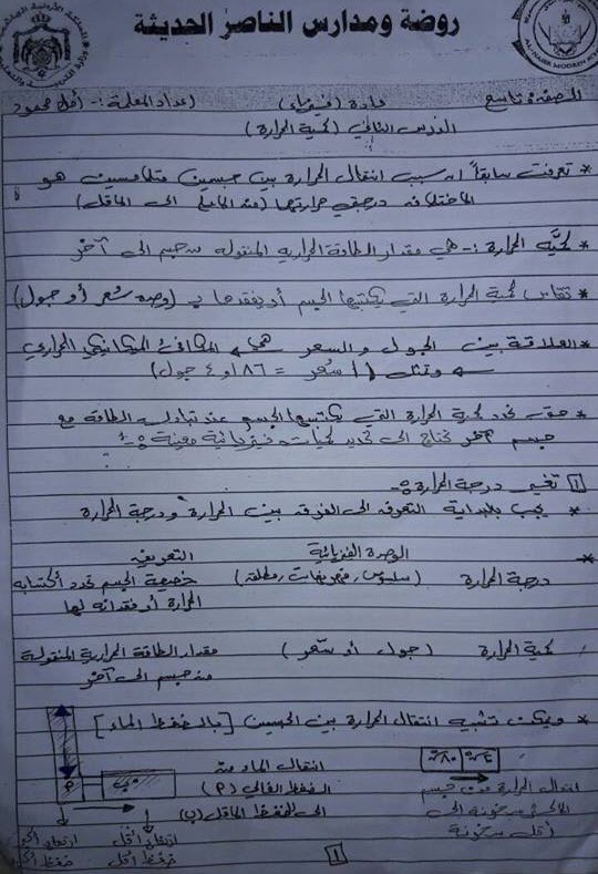 مجموعة أوراق عمل وحدة الحرارة والاتزان الحراري لمادة الفيزياء للصف التاسع الفصل الثاني 2018
