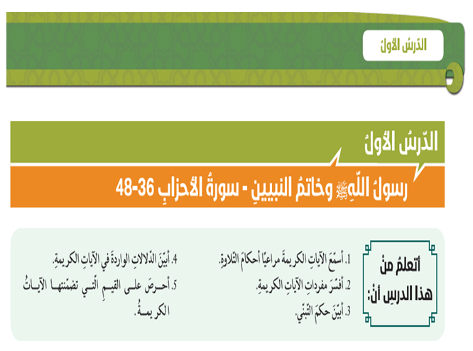 درس رسول الله وخاتم النبيين سورة الاحزاب 36-48 الصف الحادي عشر الفصل الثالث 2017