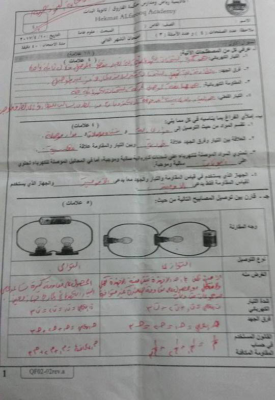 بالصور مع الإجابة : نموذج جديد لاختبار الشهر الثاني لمادة العلوم للصف الثامن الفصل الثاني 2018