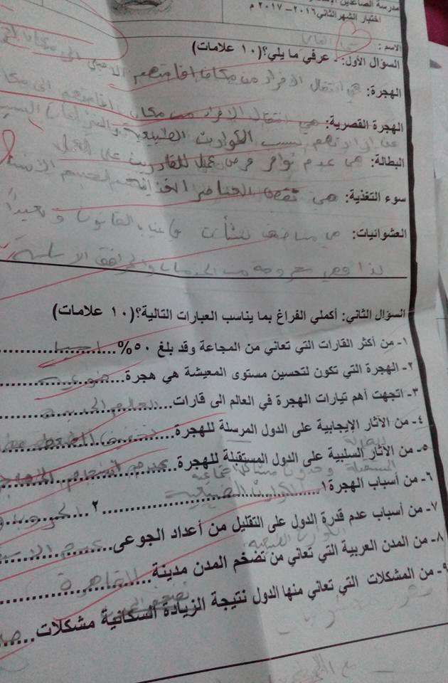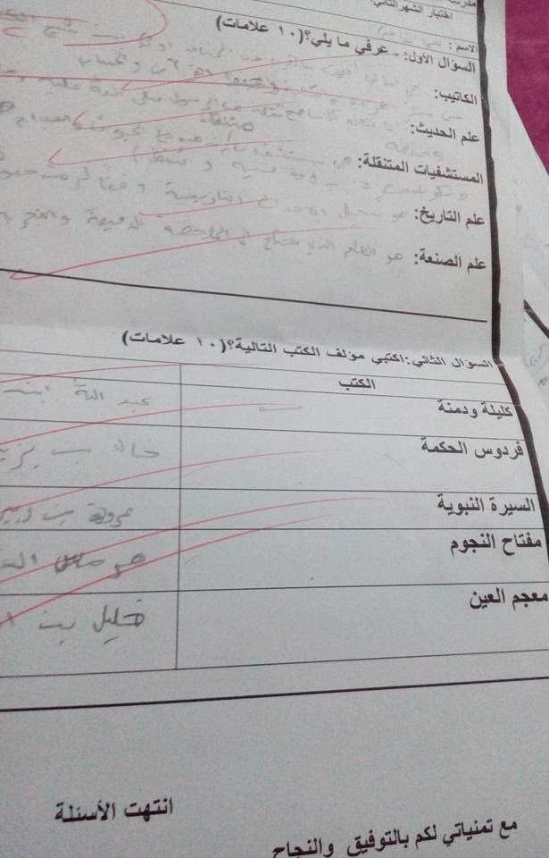 ع علي صبحي زهران إنضم 6 سبتمبر 2014 المشاركات 61 مستوى التفاعل 0 النقاط 6 العمر 48 7 مايو 2022 #7 همسآت شرقية قال: بالصور نماذج جديدة اختبارات الشهر الثاني (تاريخ وجغرافيا وتربية وطنية) للصف السابع الفصل الثاني 2017-2018 او التحميل لكم من المرفقات أنقر للتوسيع... مشكوريين على هذه المعلومات