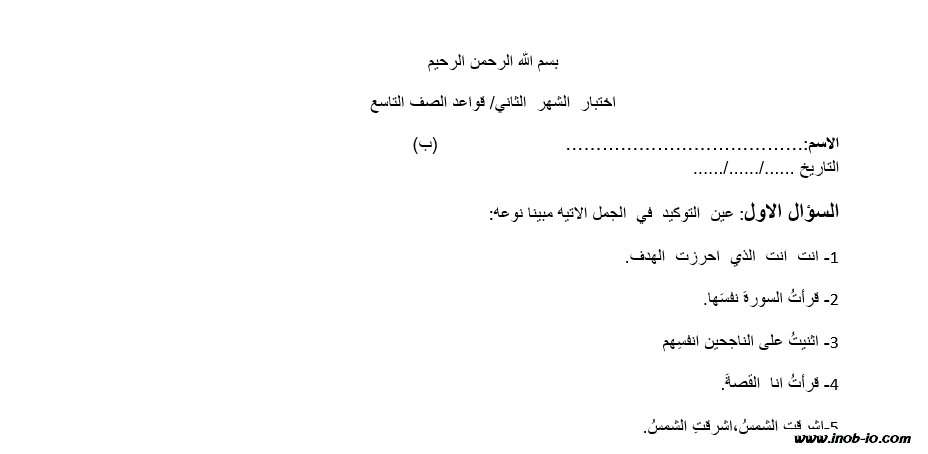 Word اختبار الشهر الثاني لمادة اللغة العربية للصف التاسع الفصل الثاني