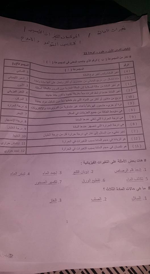 ملخص للدروس الامتحان لمادة العلوم تغيرات الحالة المركبات و التغيرات الكيميائية و الأحماض والقواعد والأملاح الفصل الثالث التحميل ملف PDF لكم اضغط هنا وتابع