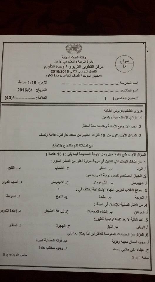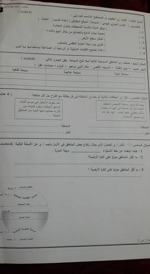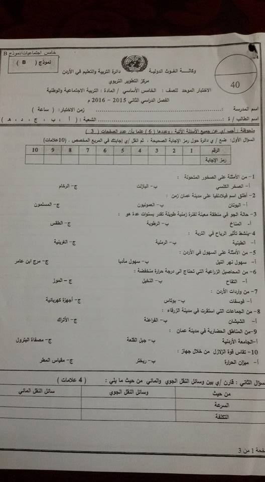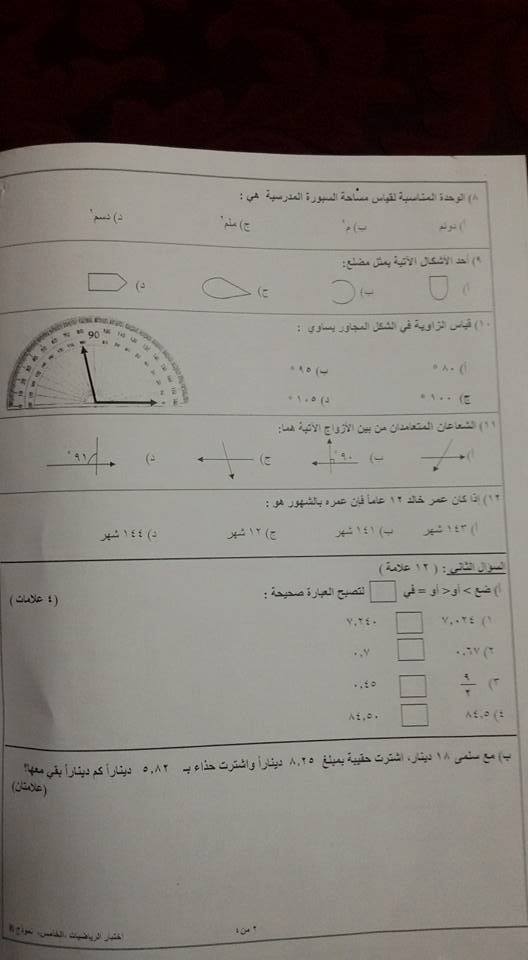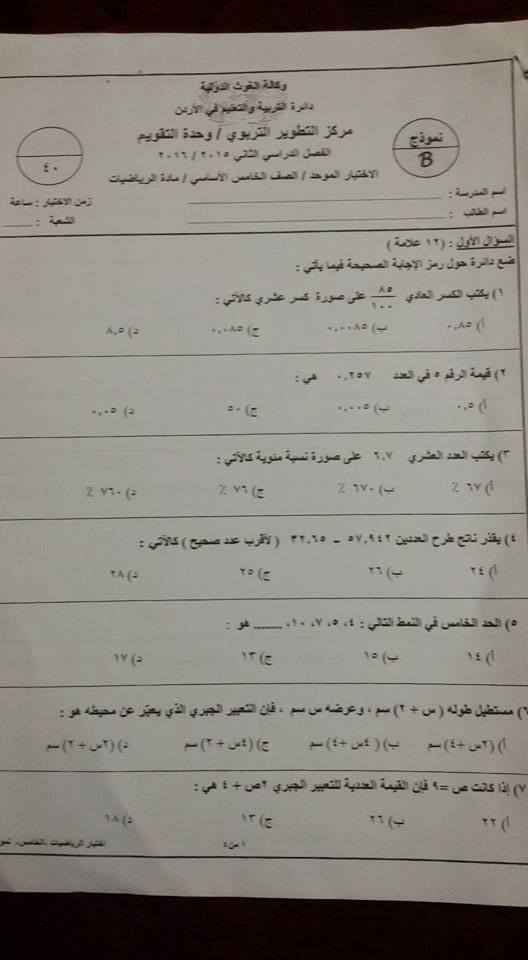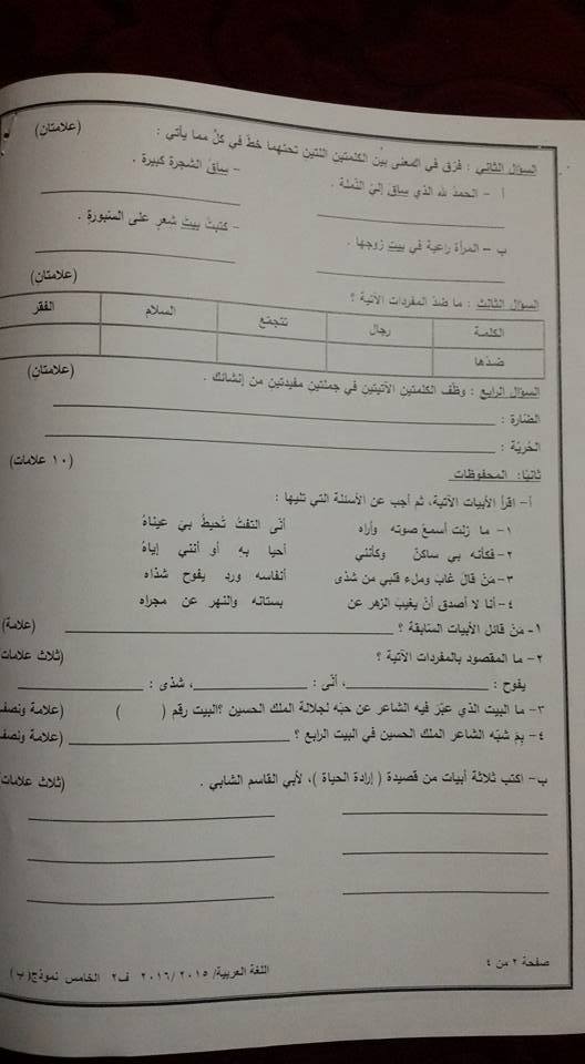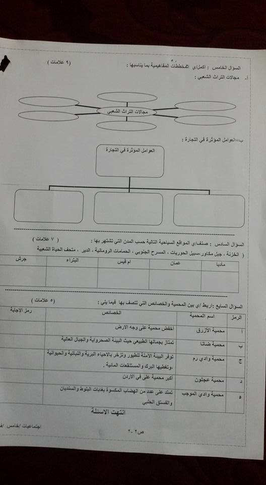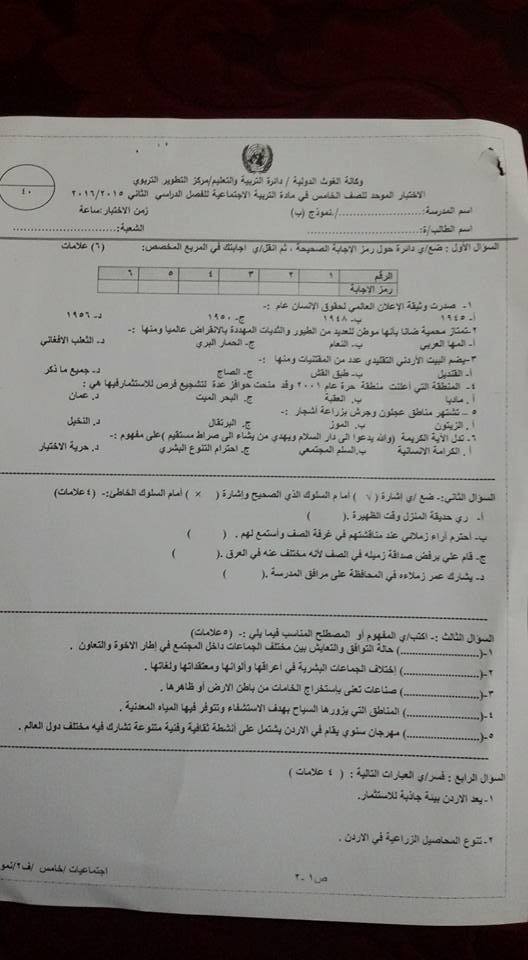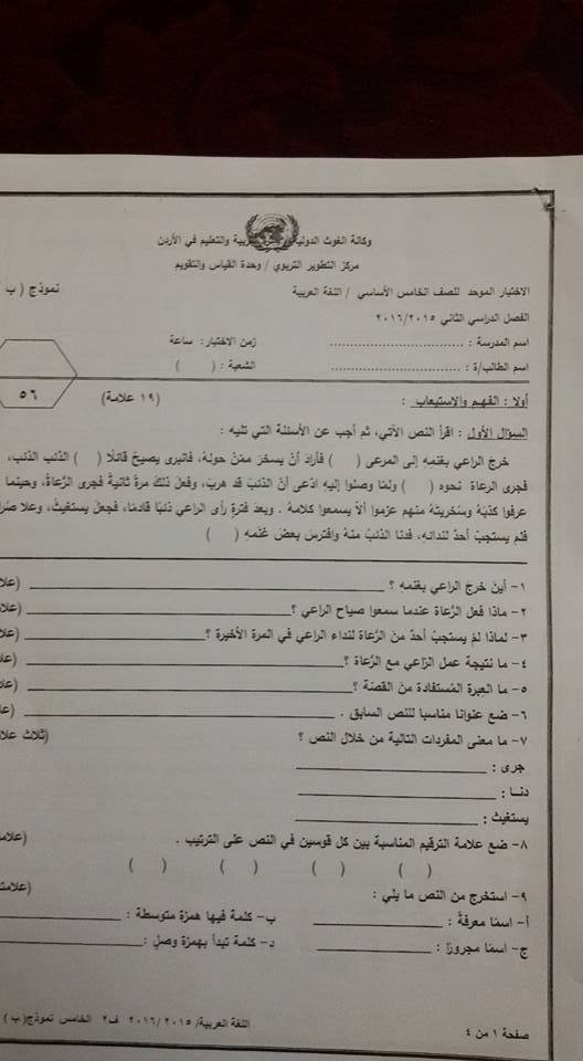 بالصور نماذج وكالة: الاختبارات النهائية الموحدة لمواد الصف الخامس الفصل الثاني للفائدة