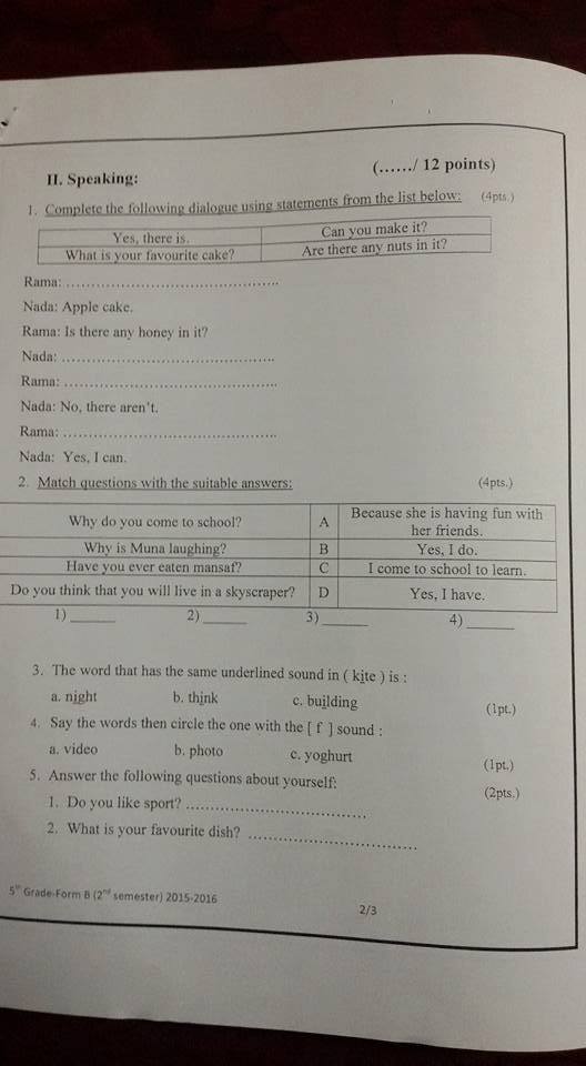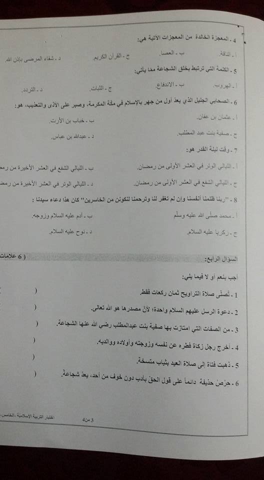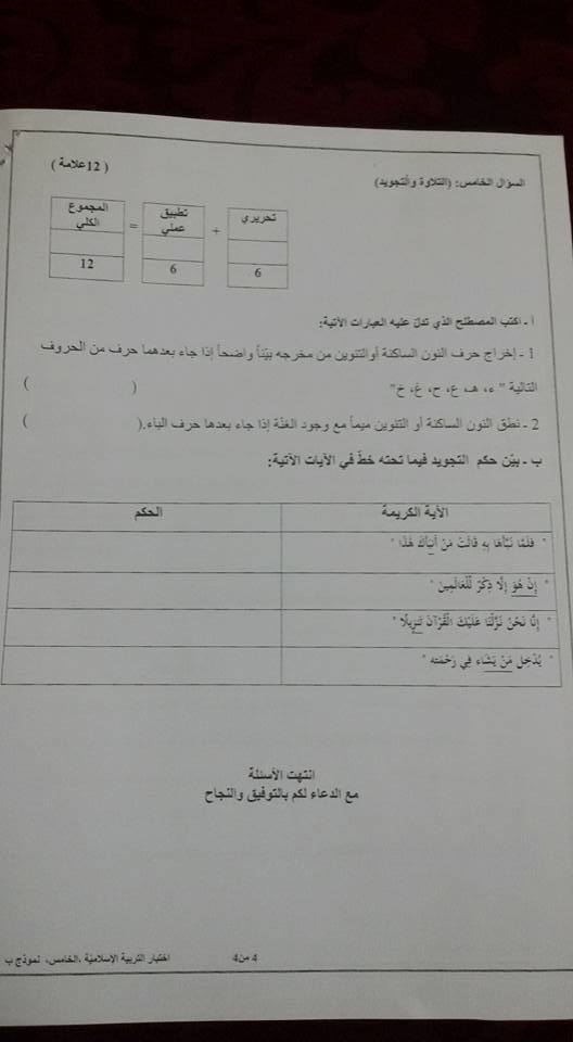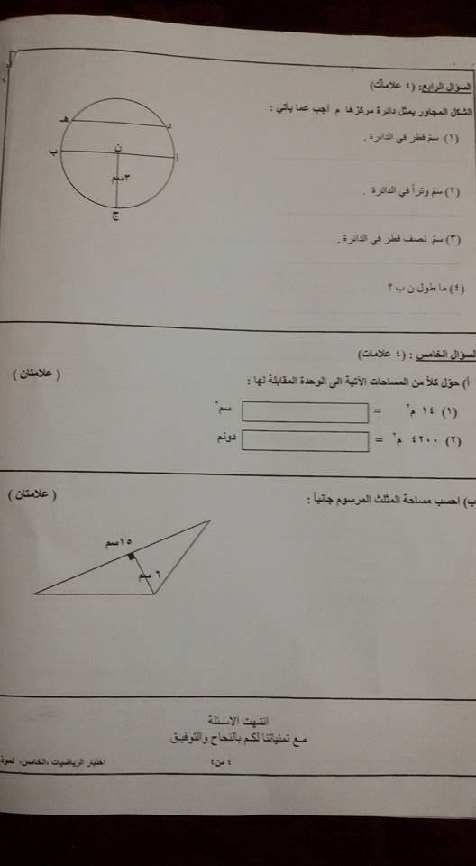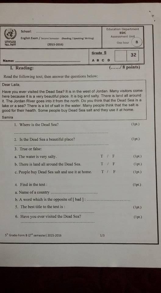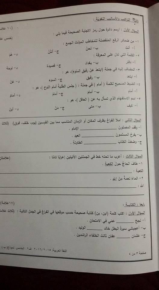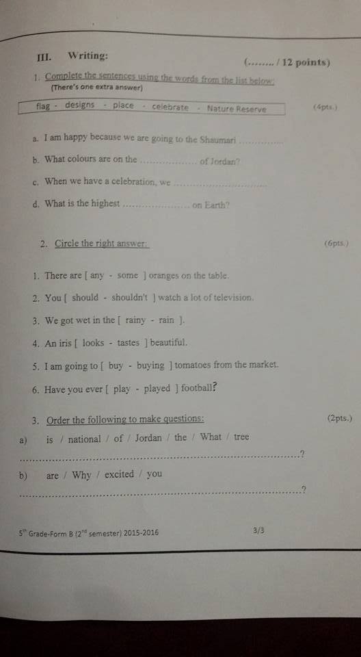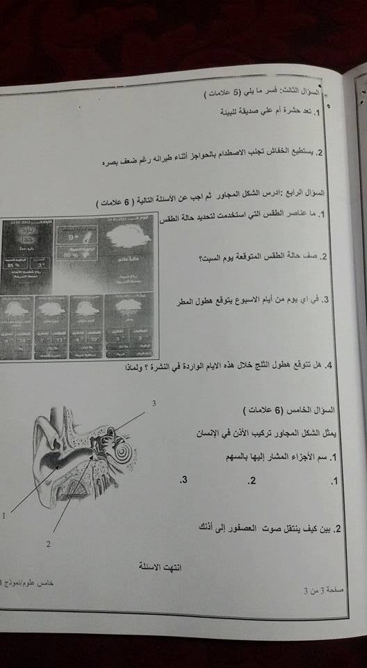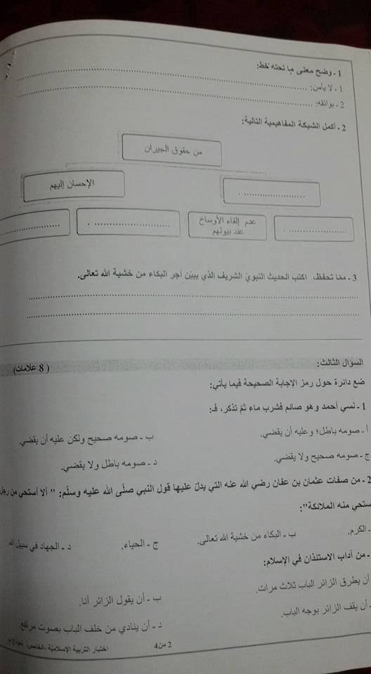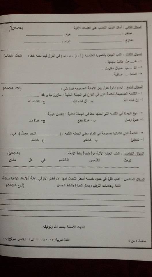 بالصور نماذج وكالة: الاختبارات النهائية الموحدة لمواد الصف الخامس الفصل الثاني للفائدة