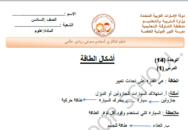 ملخص شامل لجميع الوحدات مكون من 31 صفحة لمادة العلوم الصف السادس الفصل الثالث